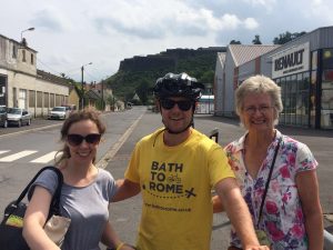 My hip and knees were dealing with the strain of the steep hills quite well. I’ll be interested to see how I get on in Switzerland! I reached the river just north of Givet and pedalled along the cycle path (see VIDEO 4). The long downhill to the river was awesome (see VIDEO 5)! I was excited to see Bridget and hoped she’d enjoy her trip. I reached Givet after 2hrs15mins, 428m of climbing and 43km! Feeling pretty pleased with that!