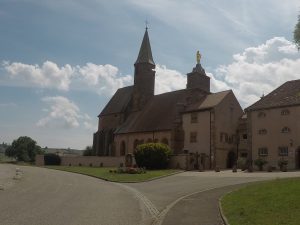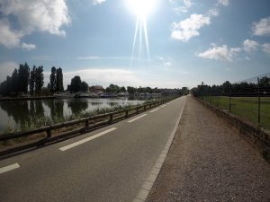 I made my way out of Saverne leaving the bike path behind. I’d identified a route to Wasselone via Google maps that didn’t use main roads. This of course is always a risk, which in fact it proved to be. The “route” was basically grassy farm tracks. I pedalled through fields of crops and cows. It was a difficult route, but the views more than made up for it!
