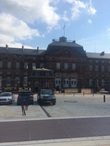 As I approached the town of Saverne, two “professional” cyclist whizzed by me. I decided to keep pace with them for as long as I could…three minutes in total, but that’s only because I wanted to see the main square in the town. Saverne was lovely. There were sparkling fountains, old buildings, and cobbled streets. However, the main attraction was a spectacular palace! The picture below doesn’t do it justice.