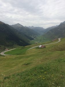 The ride looked a short one on paper but we had to climb over the Oberalp Pass so it wasn’t going to be easy. Tim and I set off and immediately had to deal with a hill. This hill lasted for 10km! The road slowly snaked its way up the side of the mountain getting higher and higher. It wasn’t the steepest incline but it was long! We reached the top and took a short break. Check out these snaps from the source of the Rhine (well…near the source).