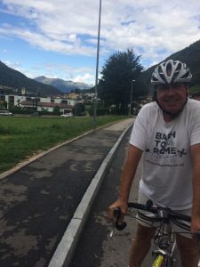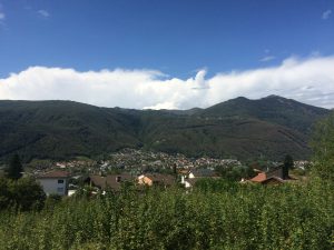 The last part of the ride wasn’t enjoyable. We cycled along a busy main road on the outskirts of Lugano. Lots of trucks came thundering past to make life a little uncomfortable. The final hill up to the campsite was a tricky one as well- Dad not happy as he “wasn’t expecting it”. View from the campsite below.