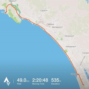 I’m afraid it wasn’t the most action packed of rides so I can’t treat you to lots of dramatic photos. Here is the data from the ride. My hip and legs are feeling good and are improving each week. We’re off to Pisa tomorrow- should be interesting!